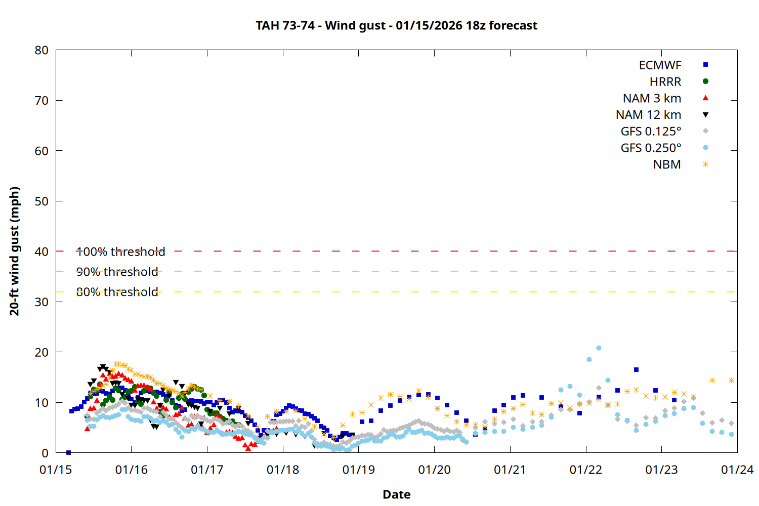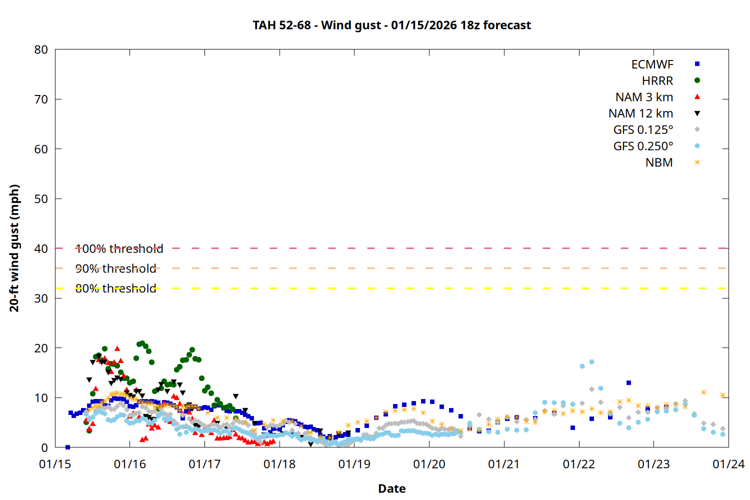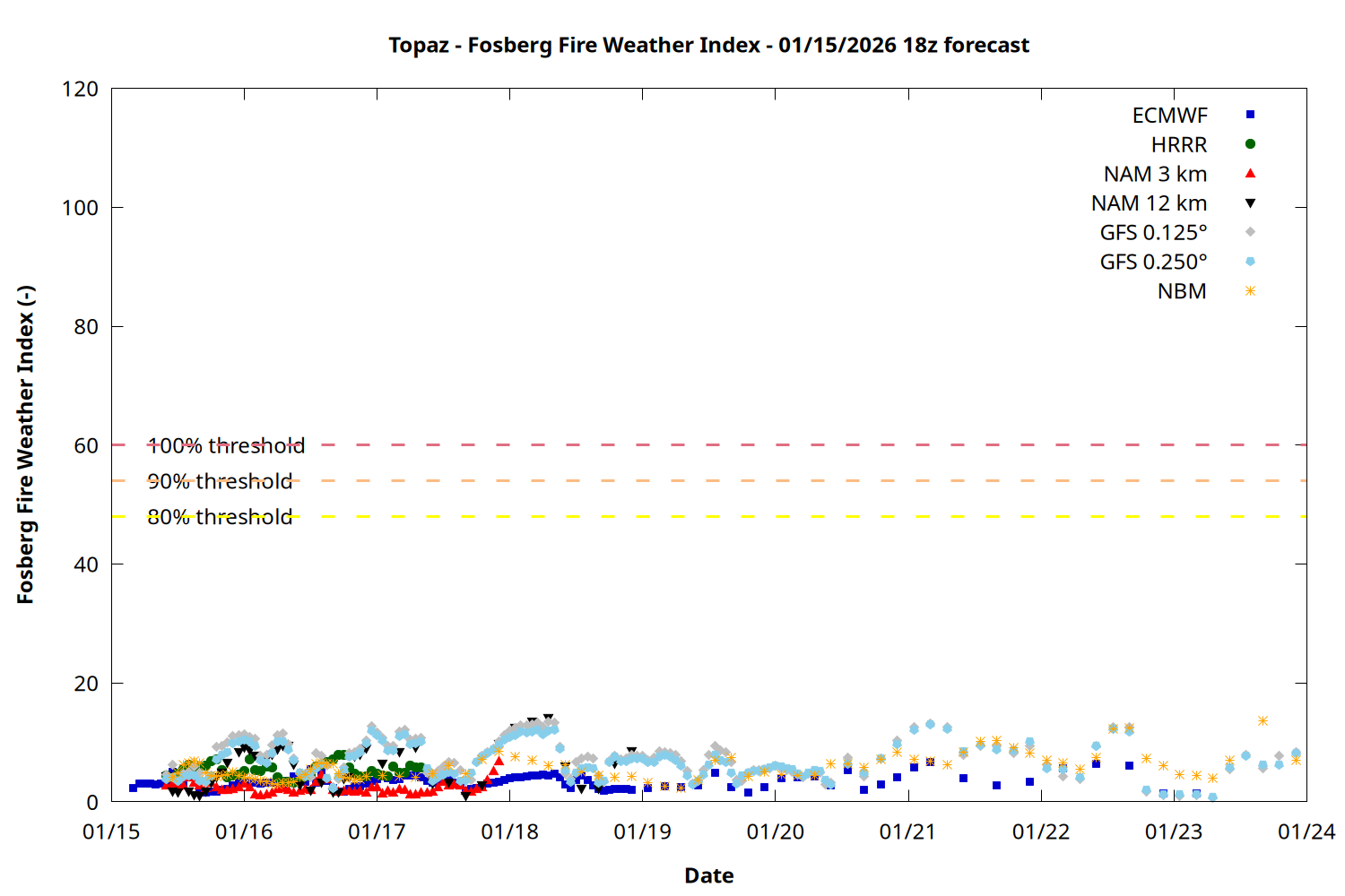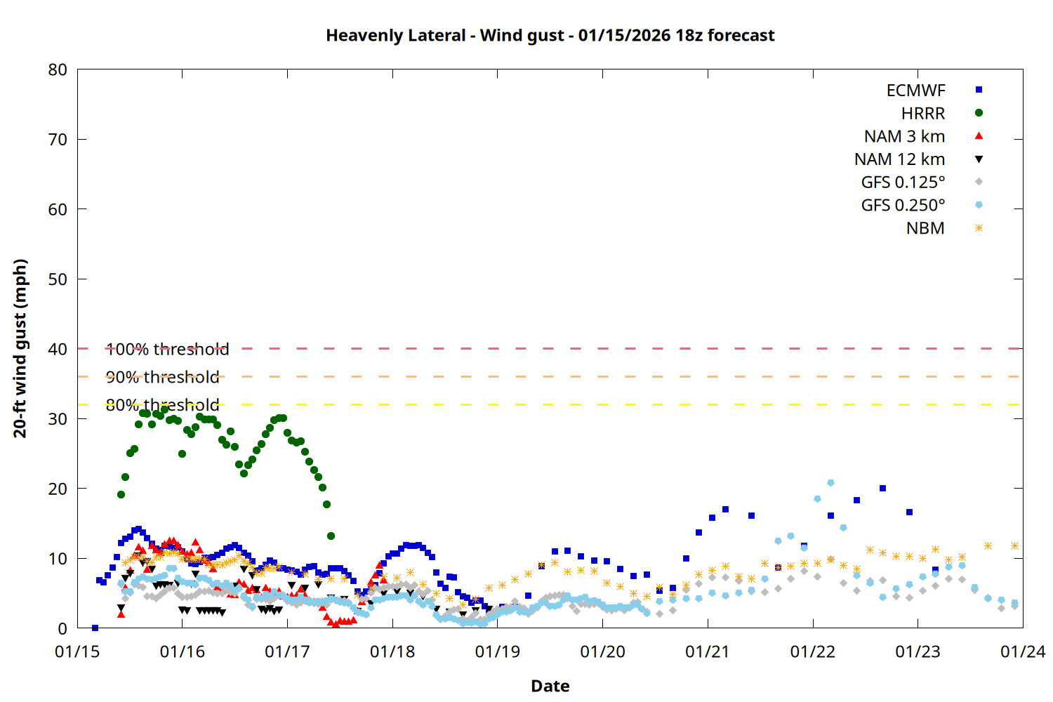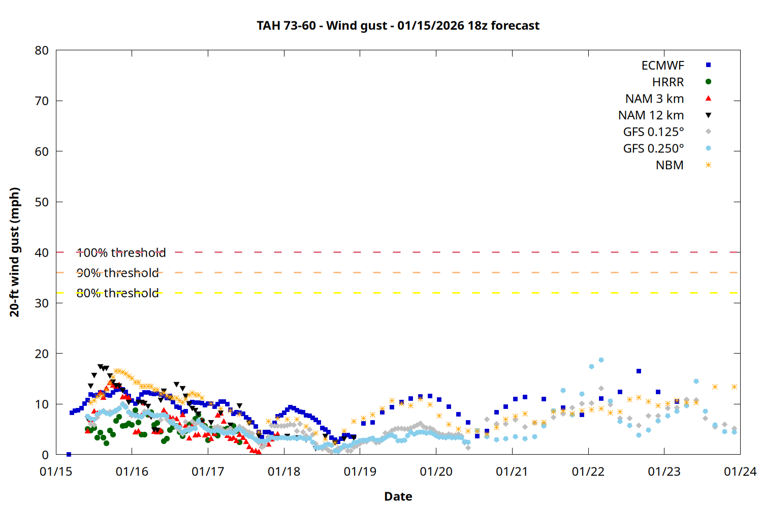 | Zone | Jan 15 | Jan 16 | Jan 17 | Jan 18 | Jan 19 | Jan 20 | Jan 21 |