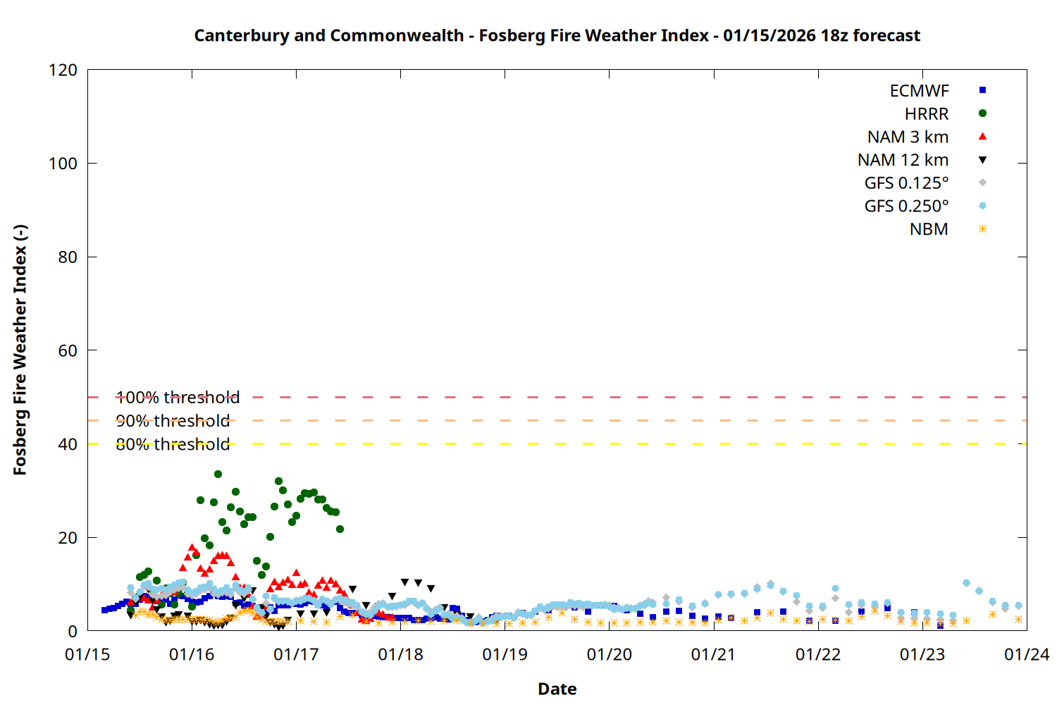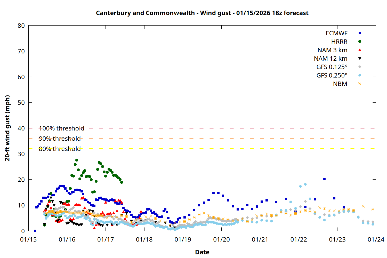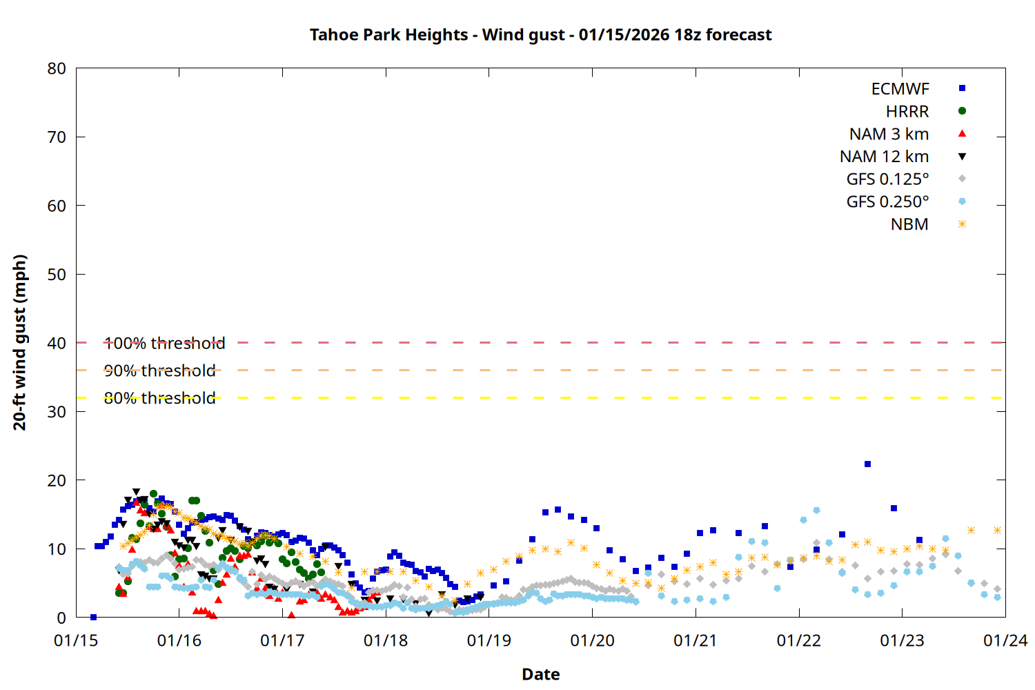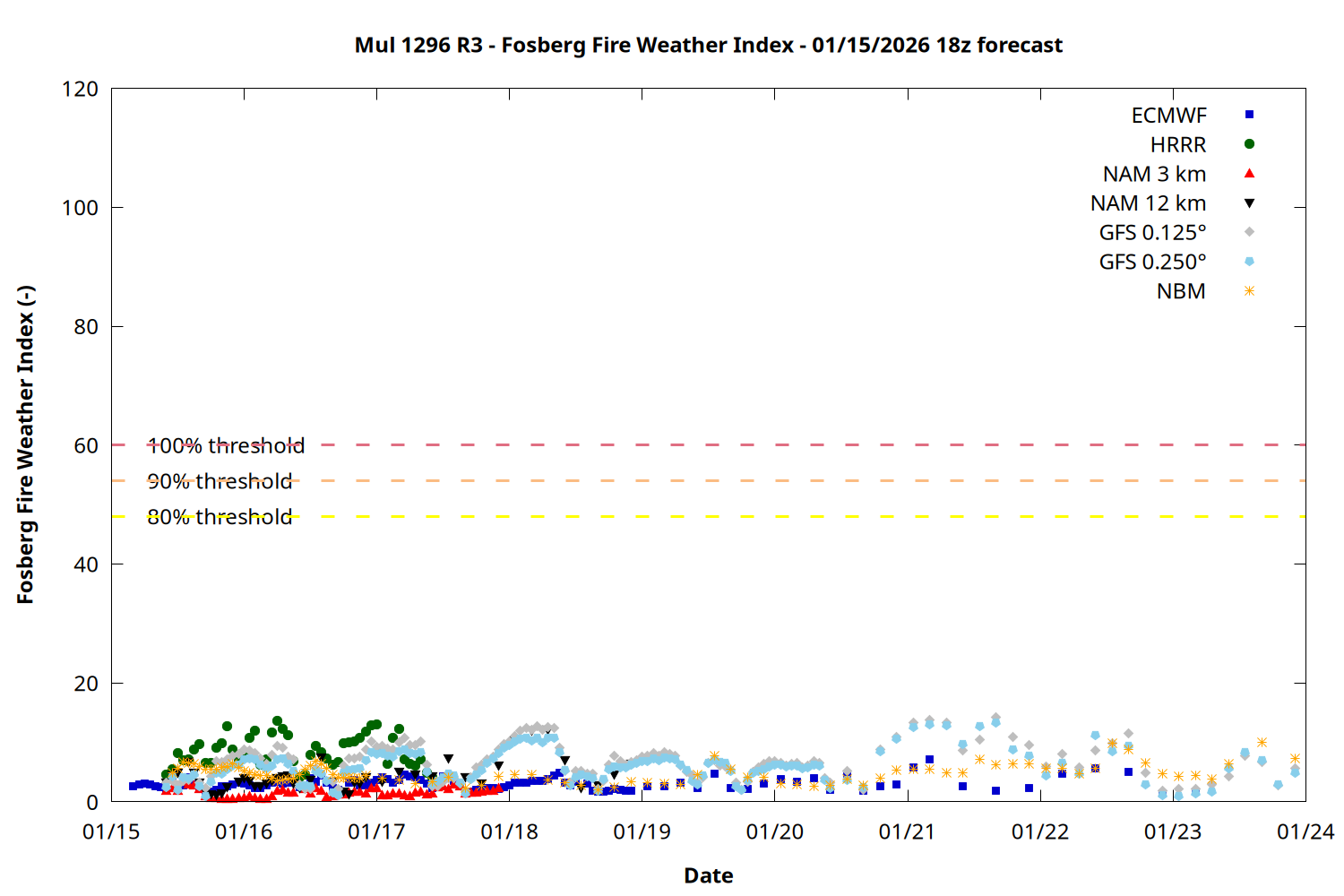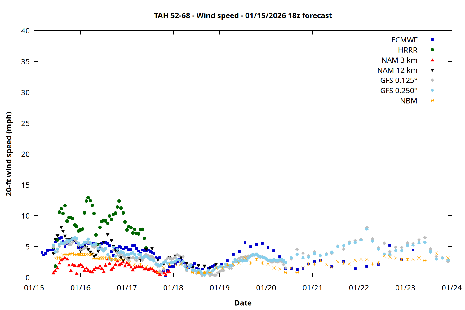 | Zone | Jan 15 | Jan 16 | Jan 17 | Jan 18 | Jan 19 | Jan 20 | Jan 21 |