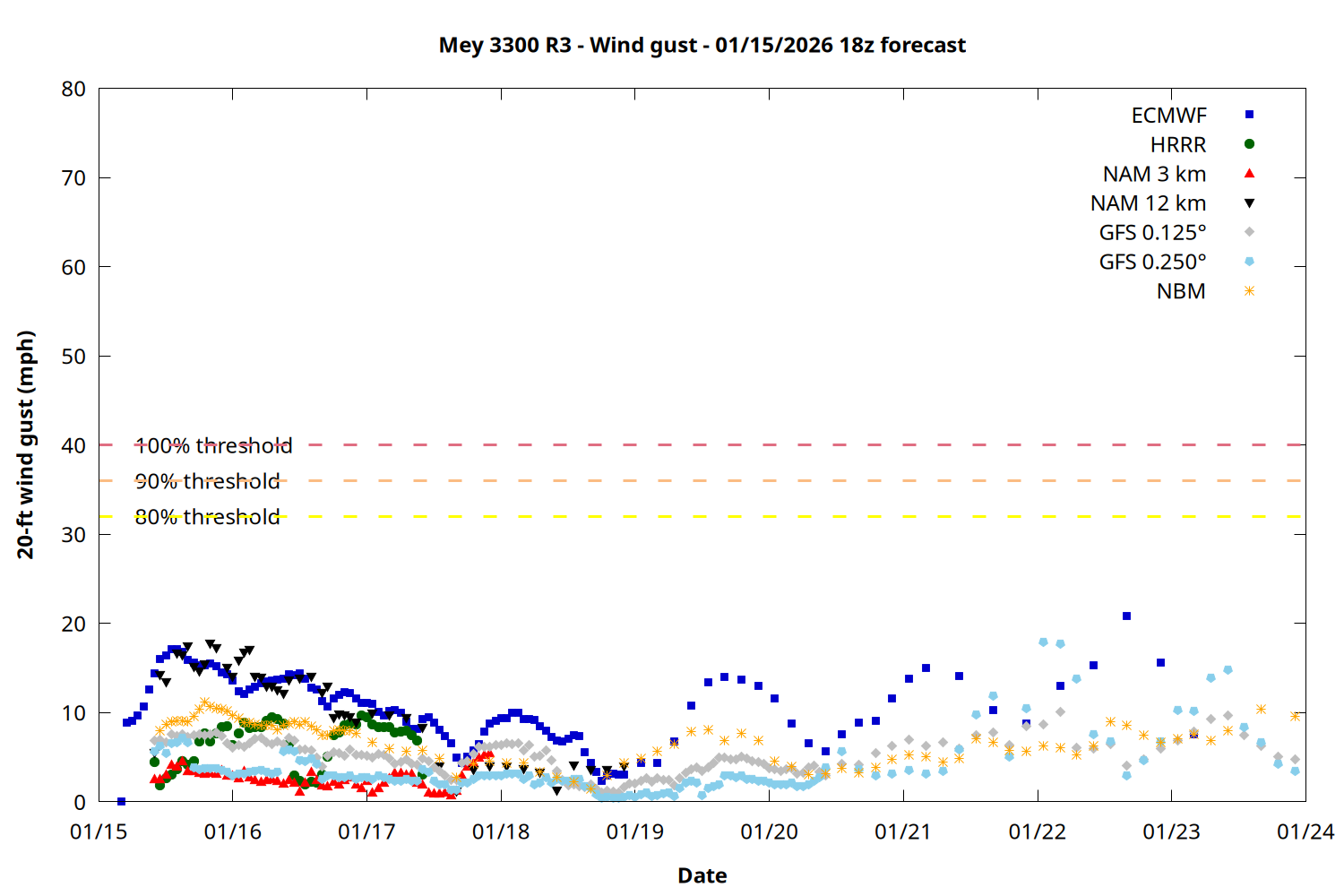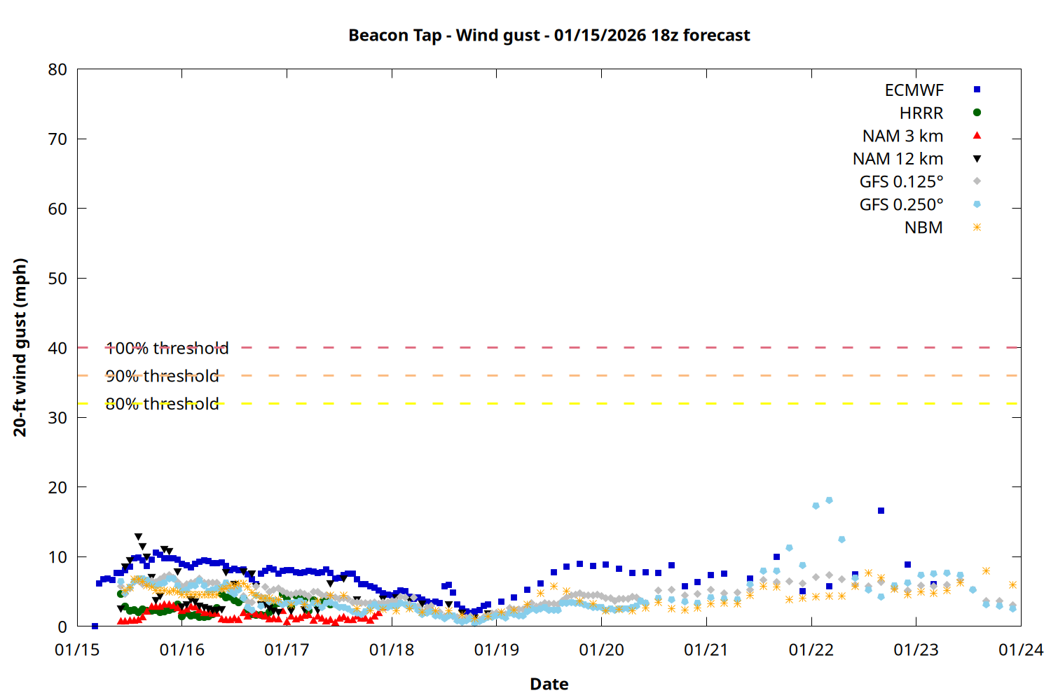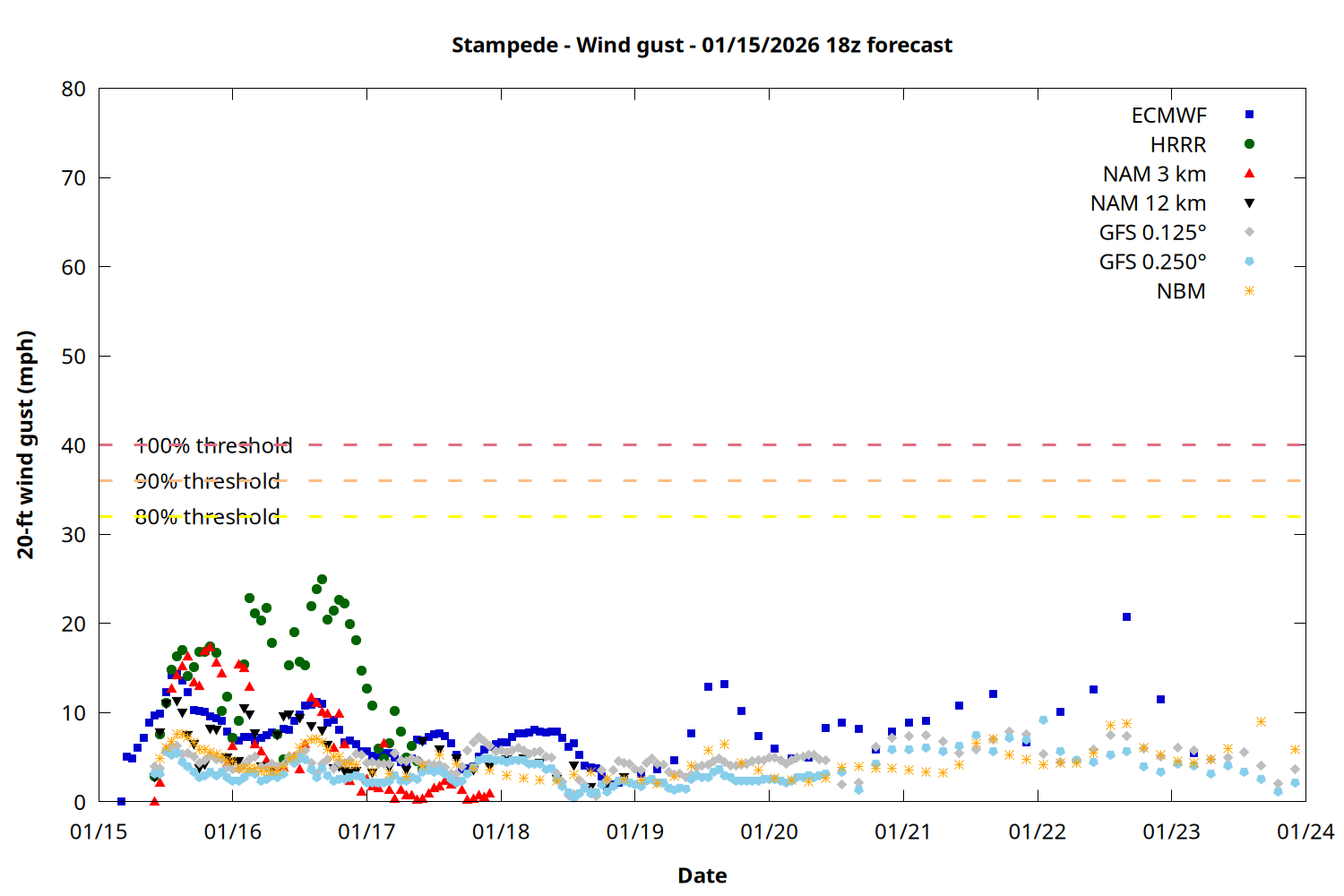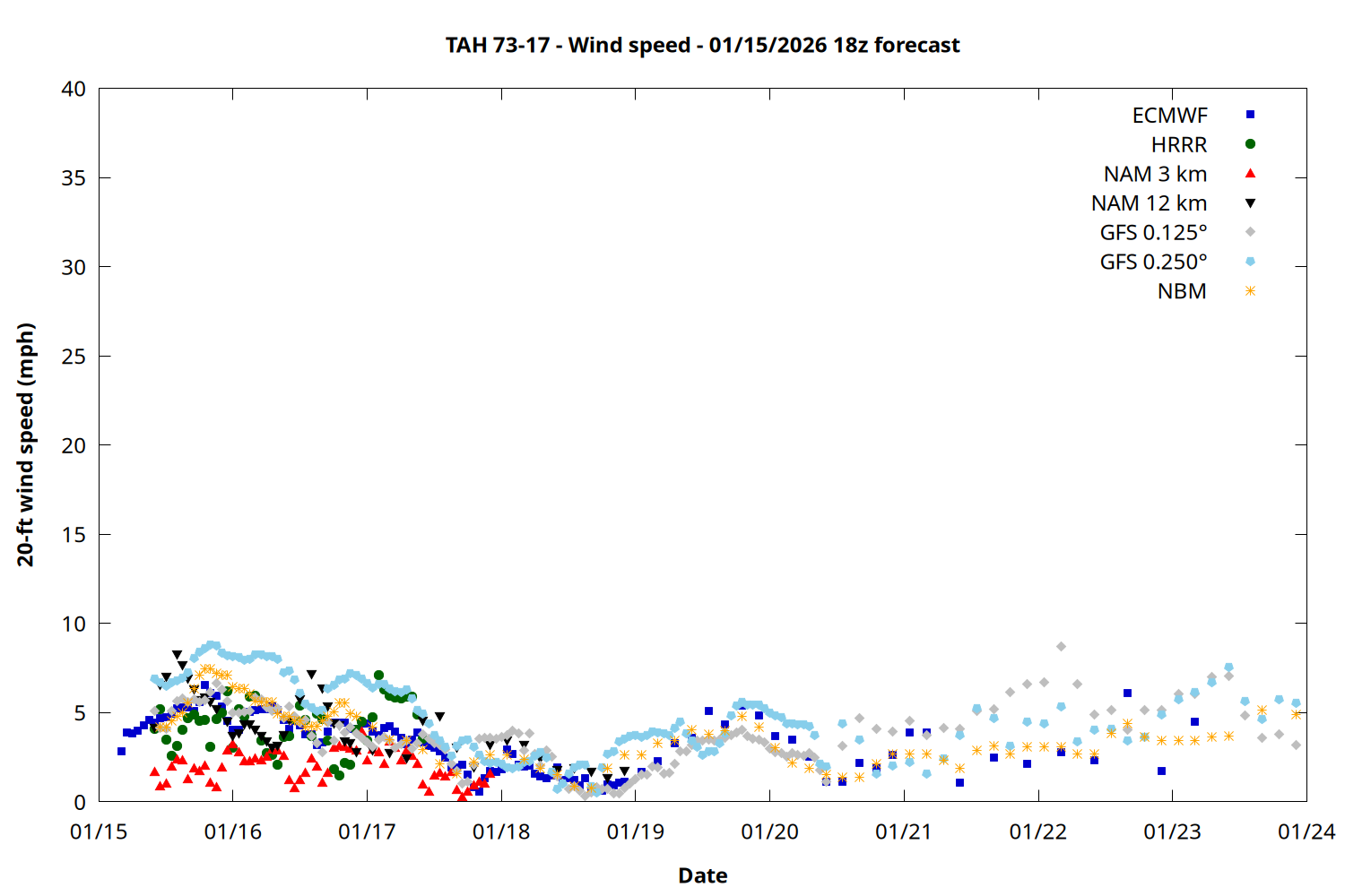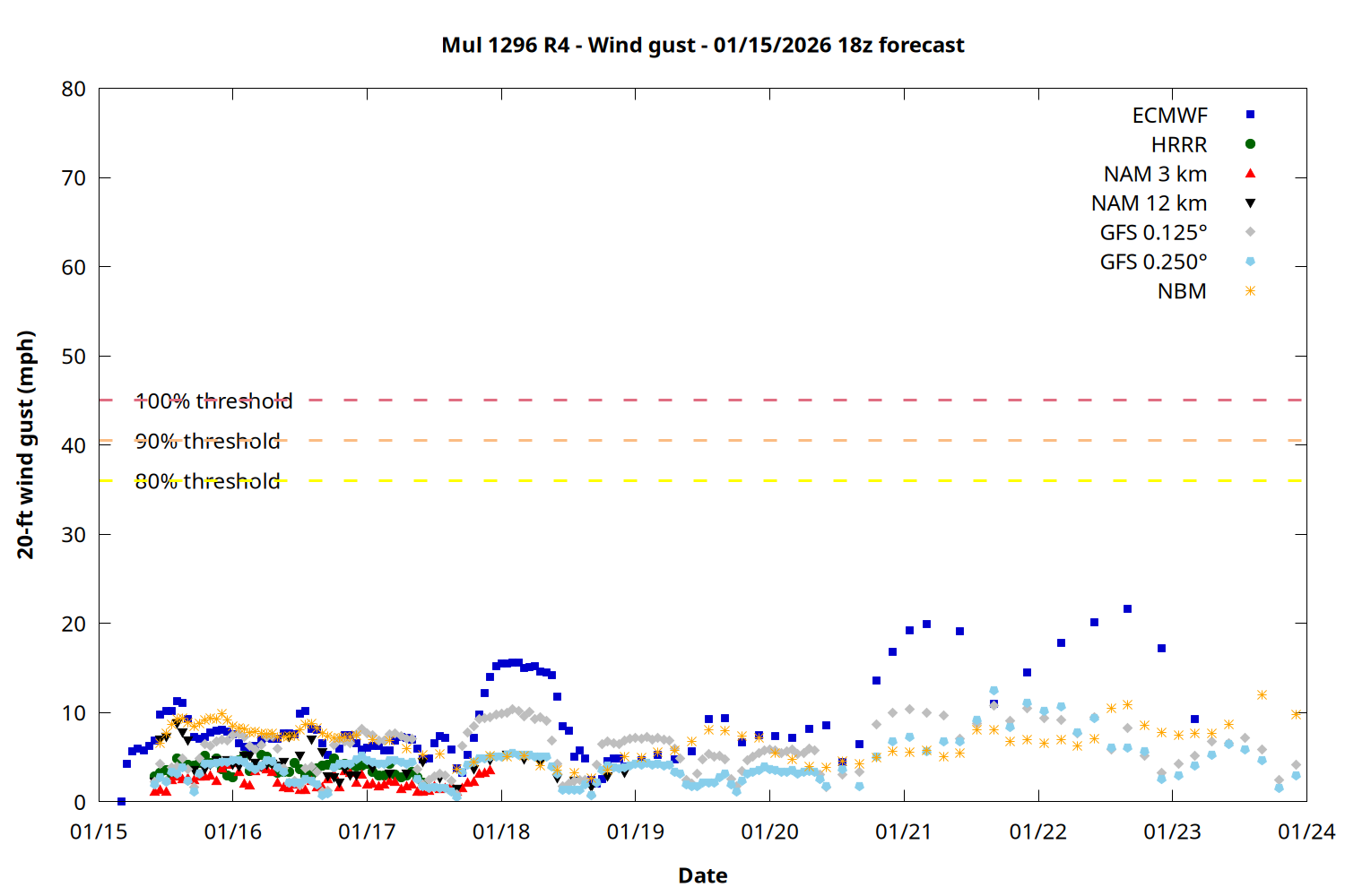 | Zone | Jan 15 | Jan 16 | Jan 17 | Jan 18 | Jan 19 | Jan 20 | Jan 21 |