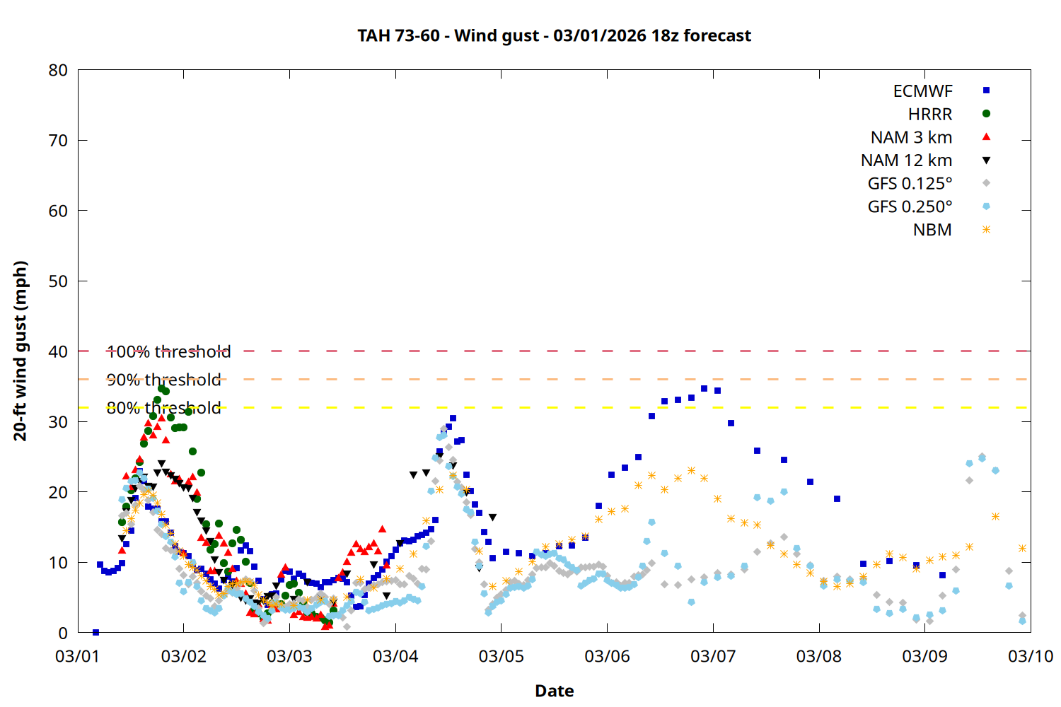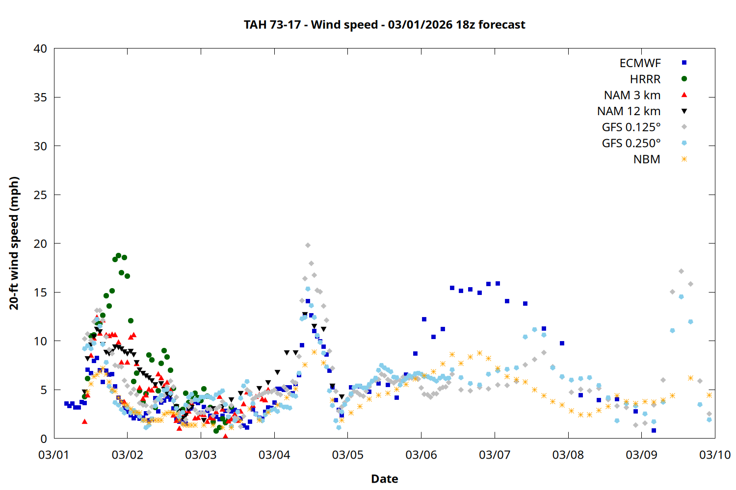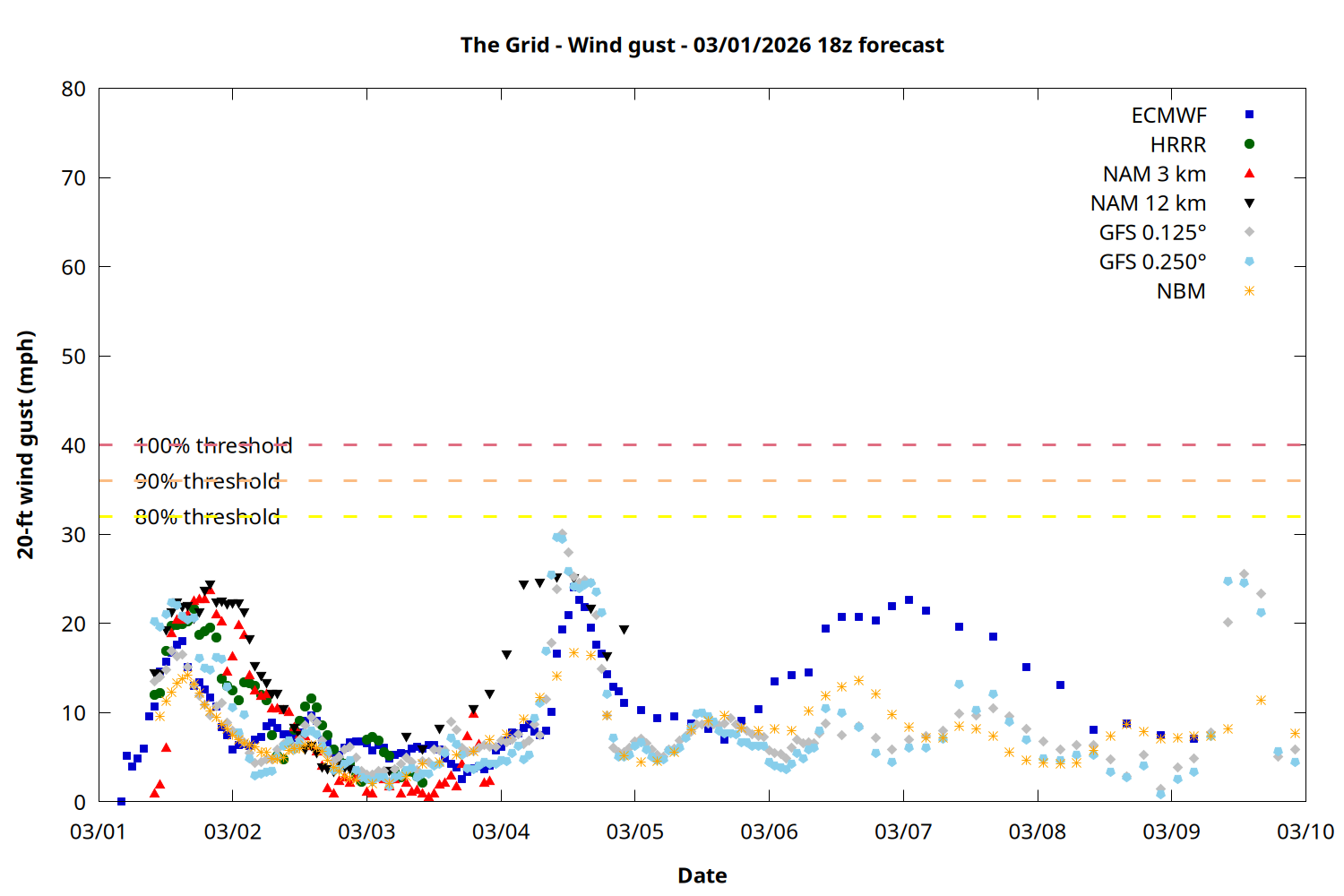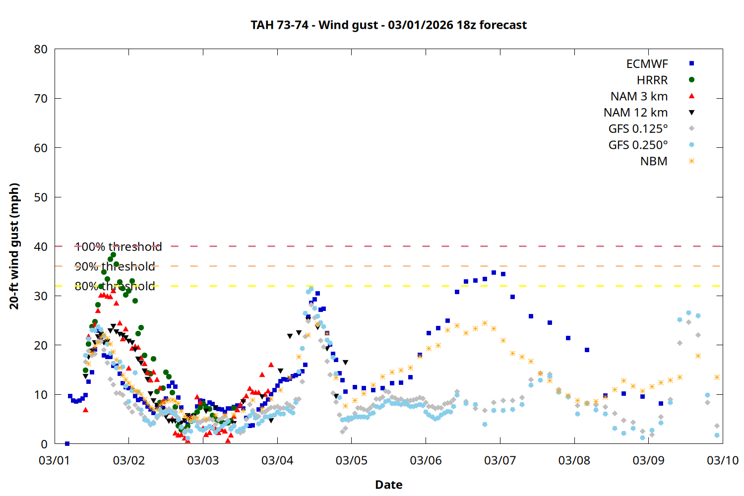 | Zone | Mar 01 | Mar 02 | Mar 03 | Mar 04 | Mar 05 | Mar 06 | Mar 07 |