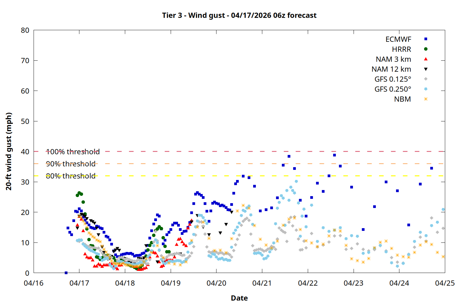 | Zone | Apr 17 | Apr 18 | Apr 19 | Apr 20 | Apr 21 | Apr 22 | Apr 23 |